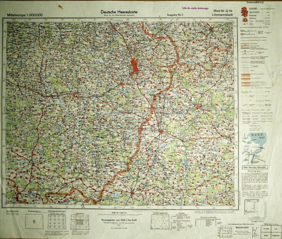 Niemiecka mapa wojskowa, 1944 r. - pogranicze GG i Kraju Warty.