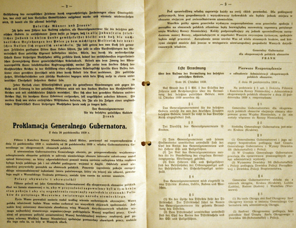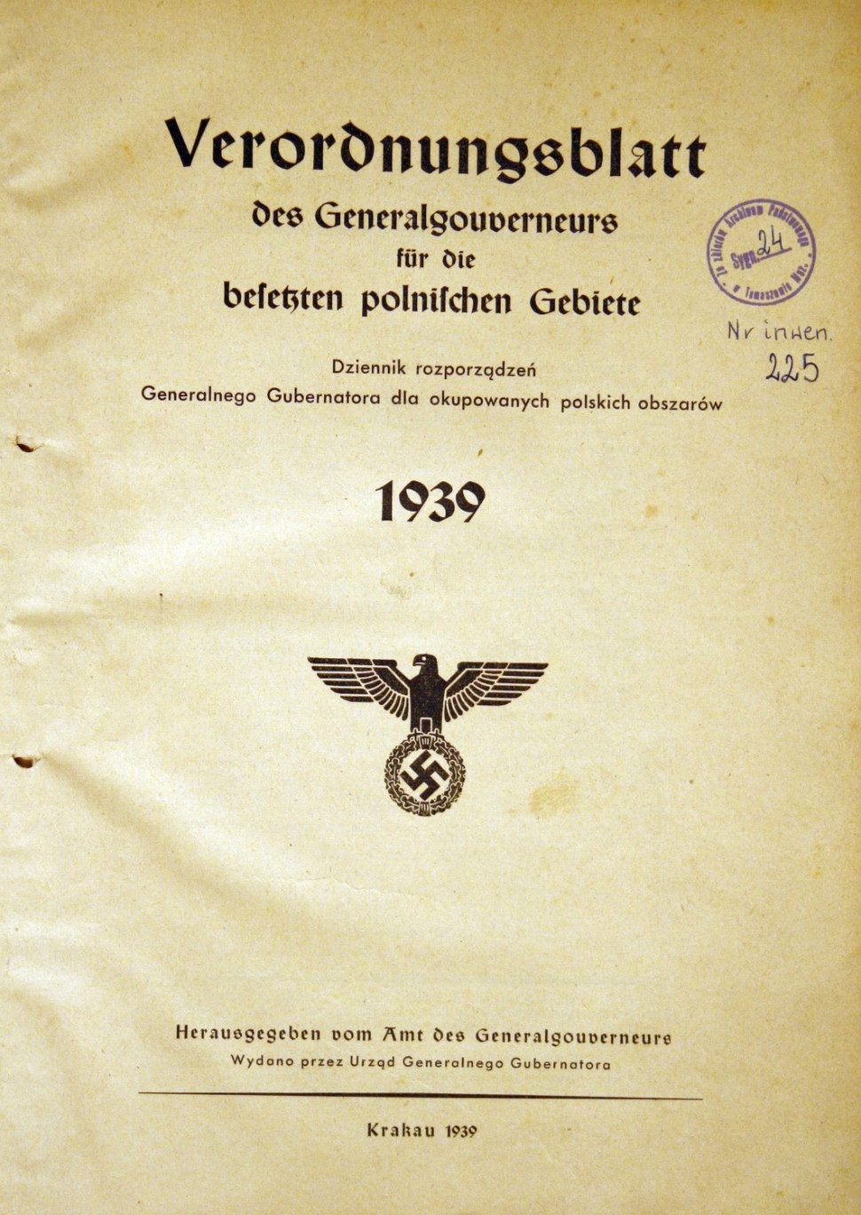Dziennik rozporządzeń Generalnego Gubernatora dla okupowanych polskich obszarów, 1939 r. - proklamacja GG