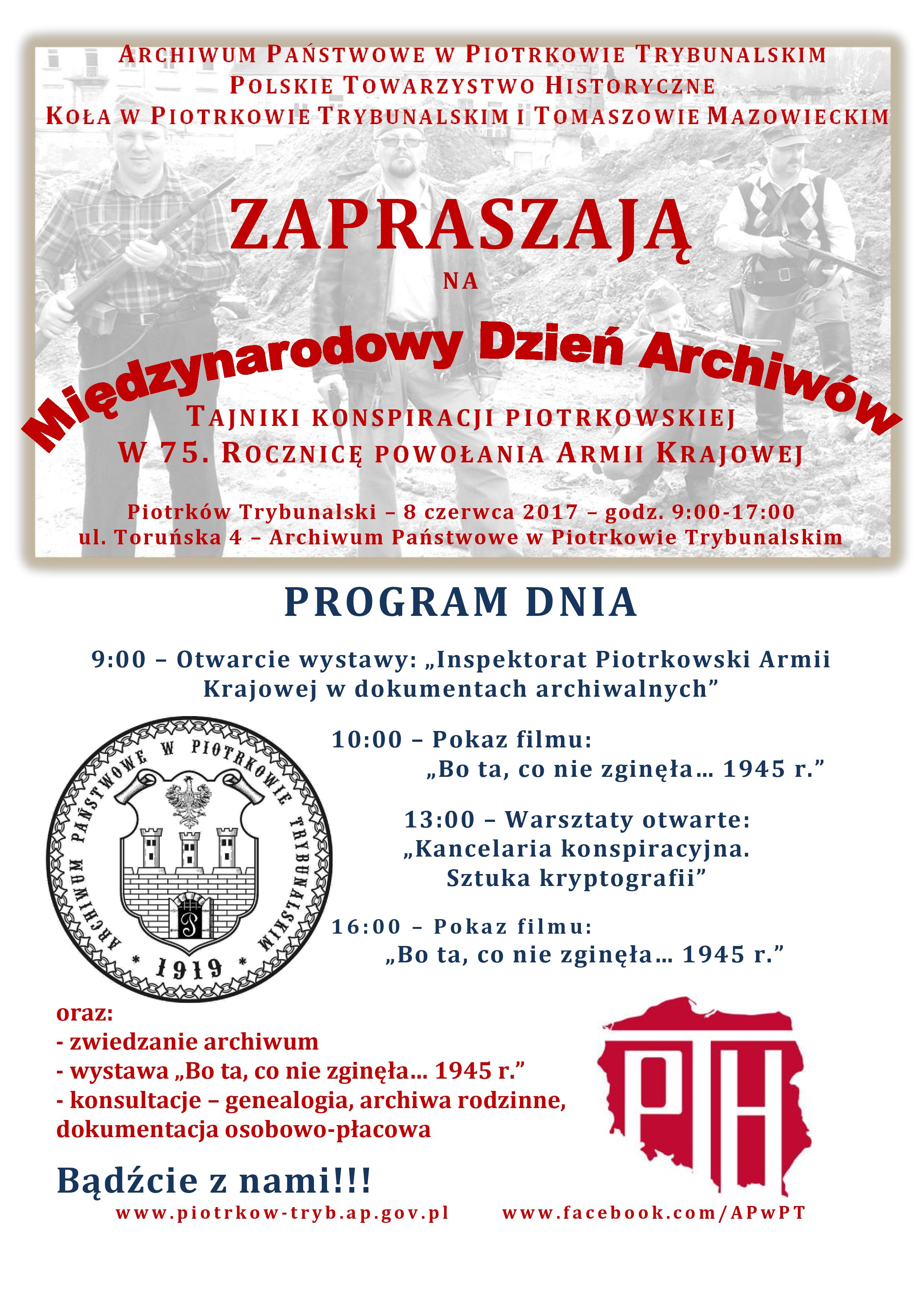 Międzynarodowy Dzień Archiwów 2017 „Tajniki konspiracji piotrkowskiej. W 75. Rocznicę powołania Armii Krajowej” Piotrków Trybunalski, 8 czerwca 2017 r.