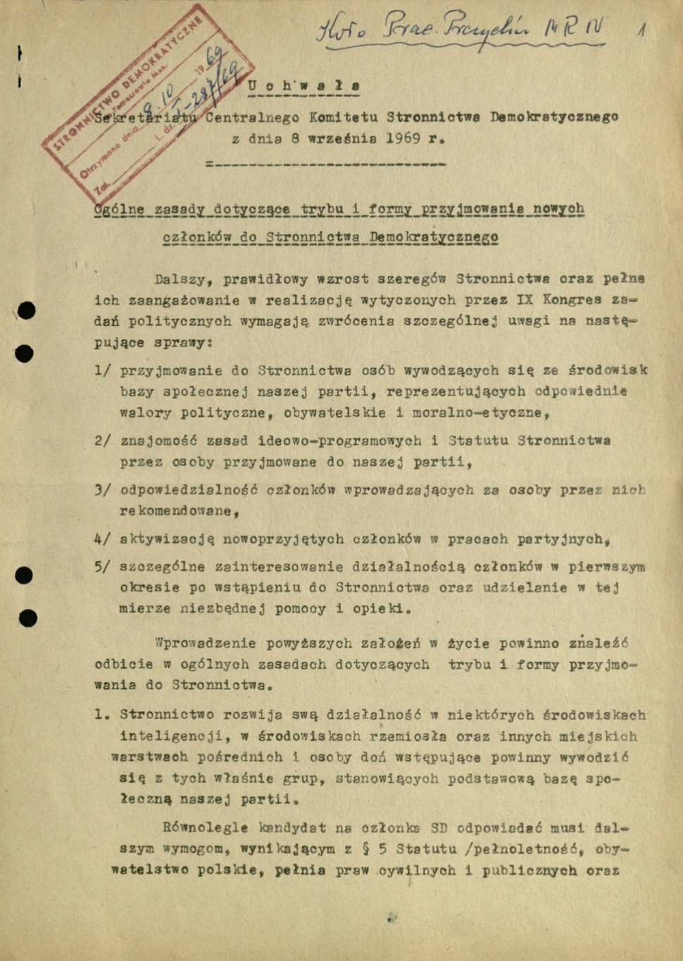 w sprawie ogólnych zasad dotyczących trybu i formy przyjmowania nowych członków do SD, 1979