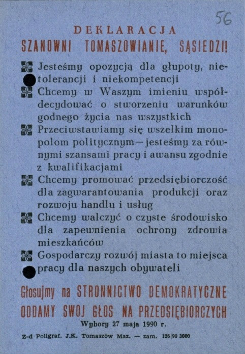 Ulotka wyborcza – Lista nr 8 Stronnictwo Demokratyczne, 1991