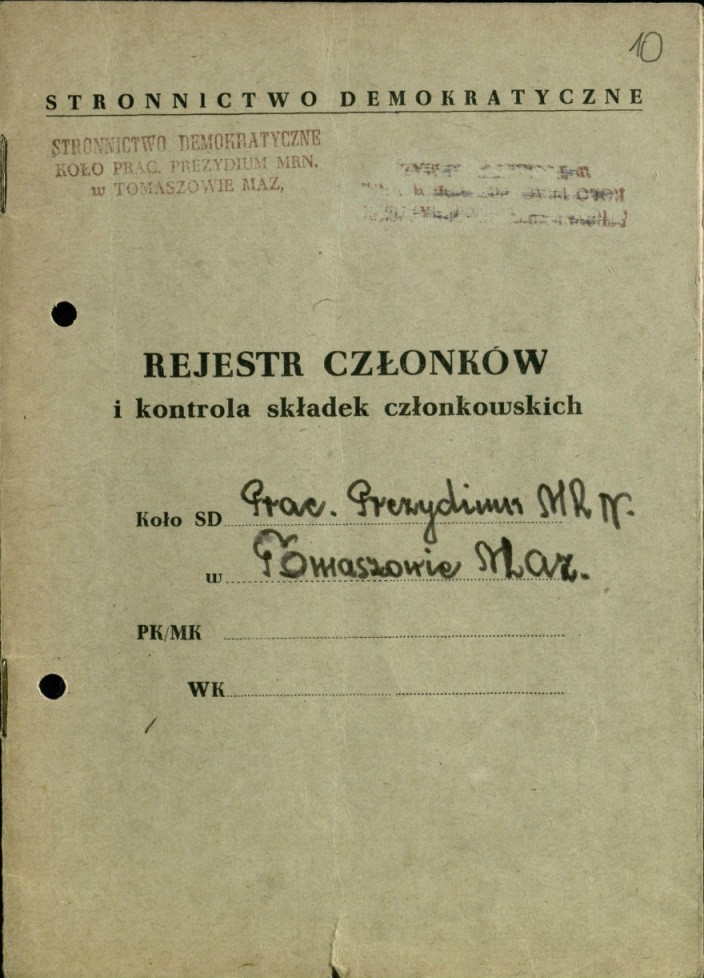 Zespół 526 - Stronnictwo Demokratyczne. Miejski Komitet w Tomaszowie Mazowieckim, sygn. 16