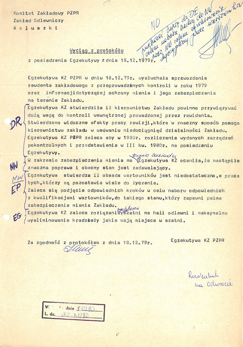 sygn. 1 – Protokół z posiedzenia Egzekutywy, 1979