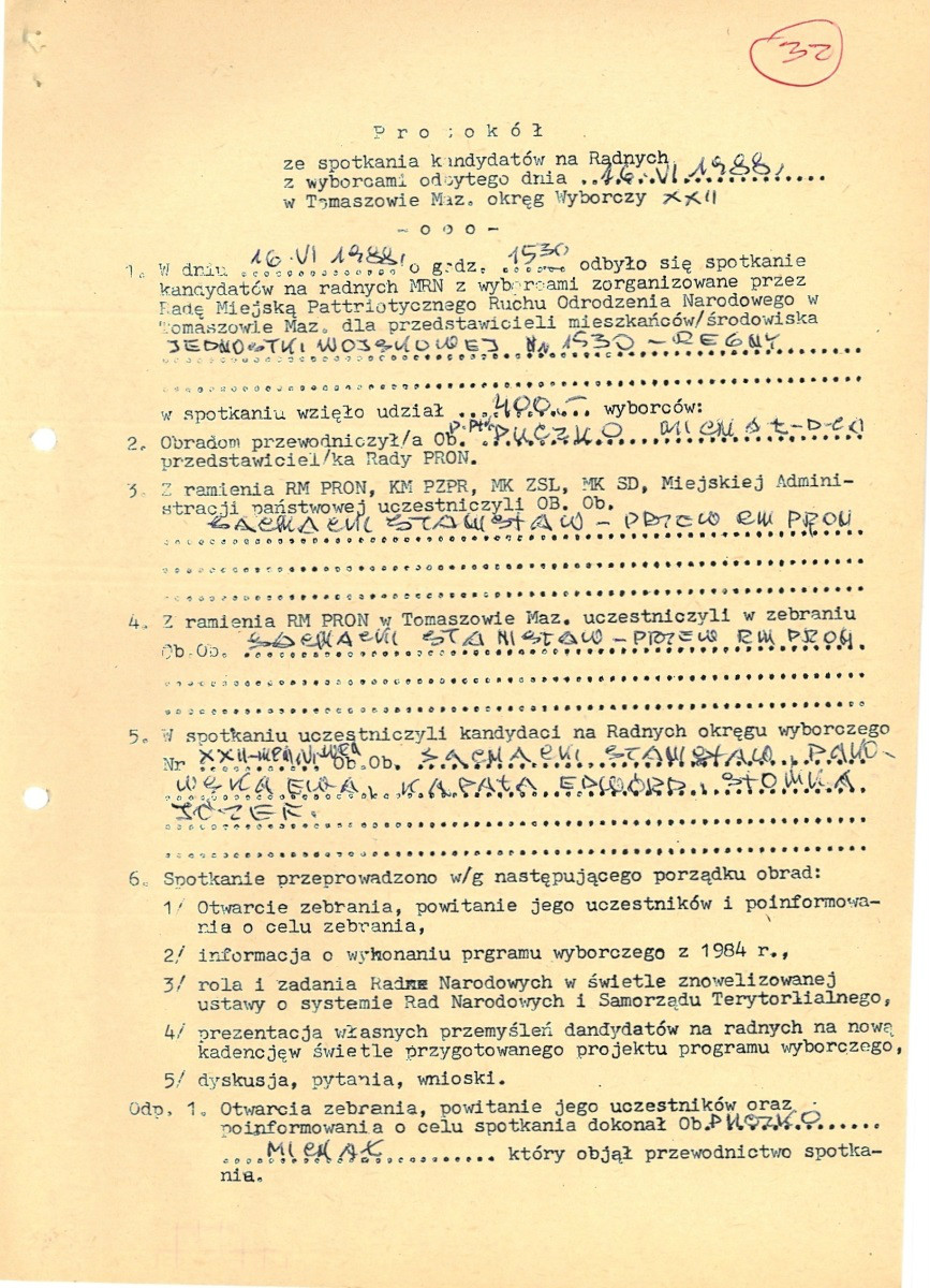 Protokoły ze spotkań kampanii na radnych, 1988