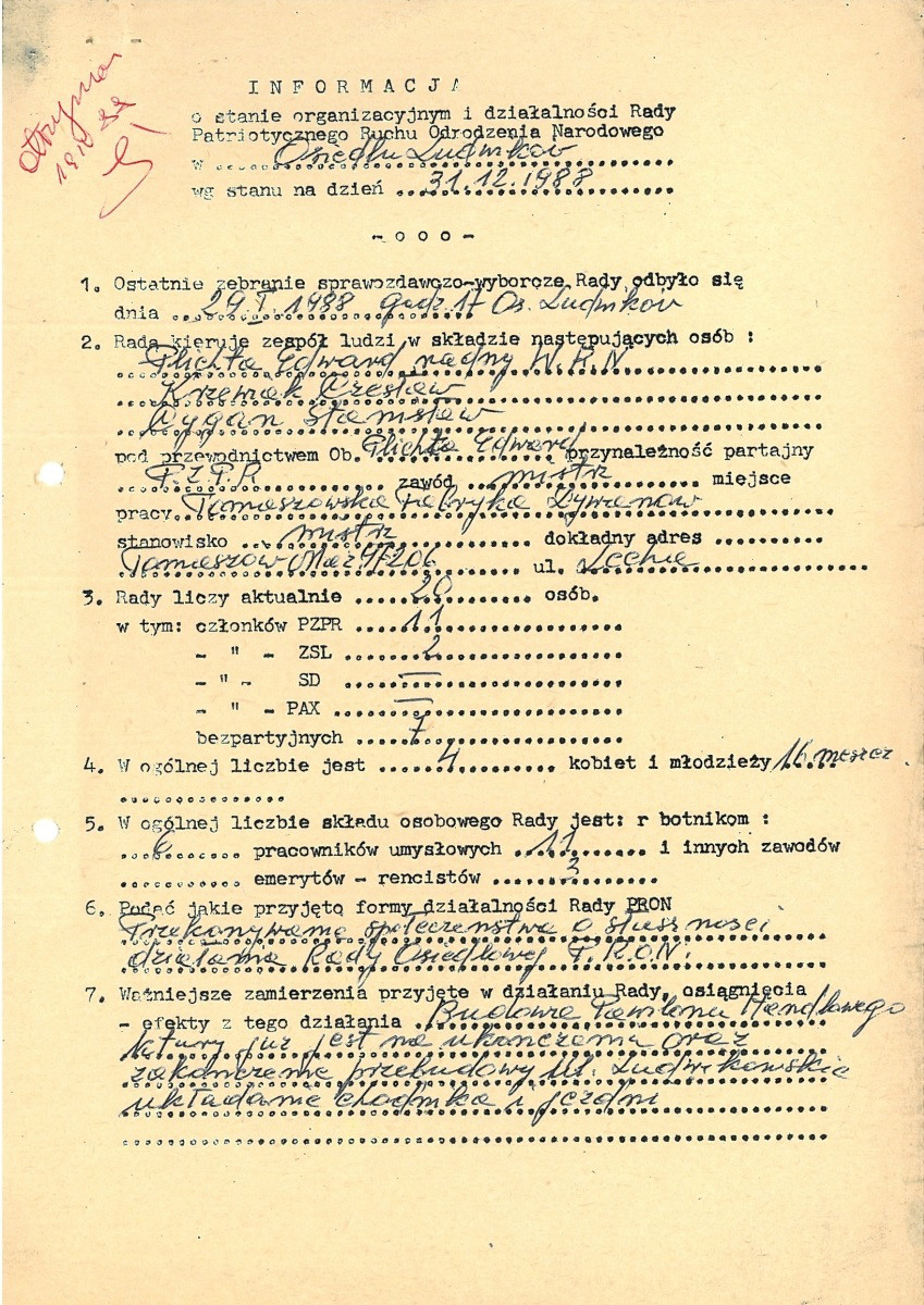 Informacje o stanie organizacji działalności podstawowych ogniw PRON, 1988