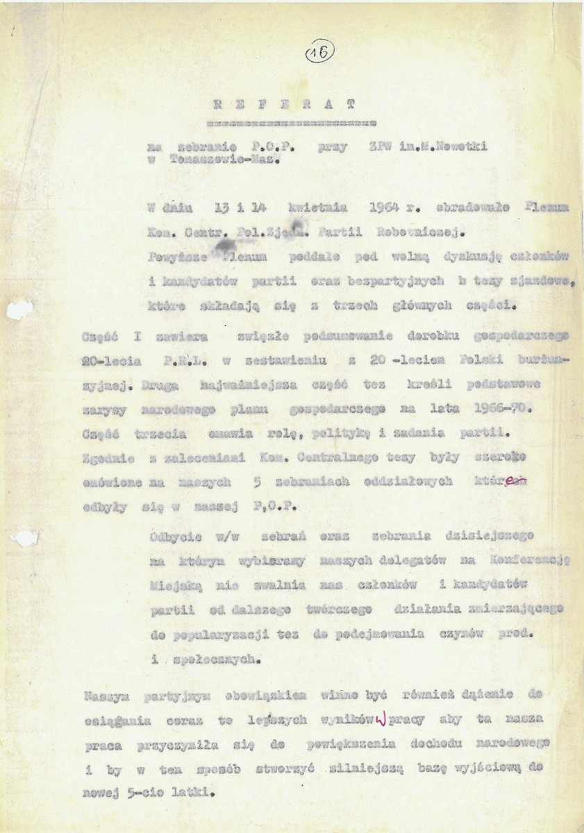 Referat na zebranie POP, 1964