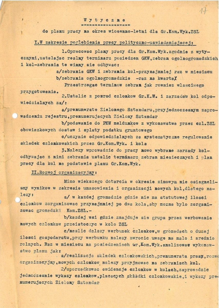 Wytyczne do planu pracy Gromadzkiego Komitetu ZSL w Krzemienicy, 1955