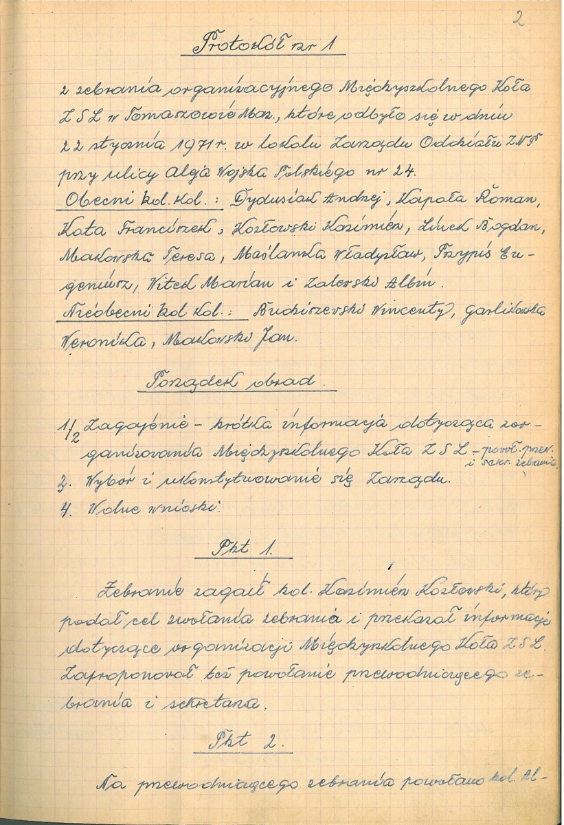 Zespół 523 – Zjednoczone Stronnictwo Ludowe Międzyszkolne Koło w Tomaszowie Mazowieckim, sygn. 1