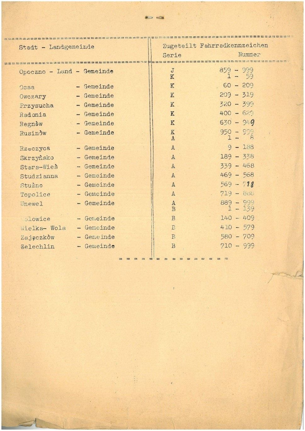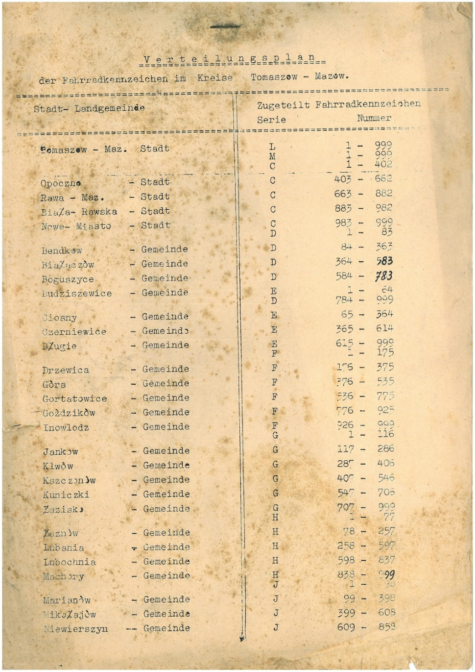 Plan dystrybucji rowerowych tablic rejestracyjnych, 1940-1941