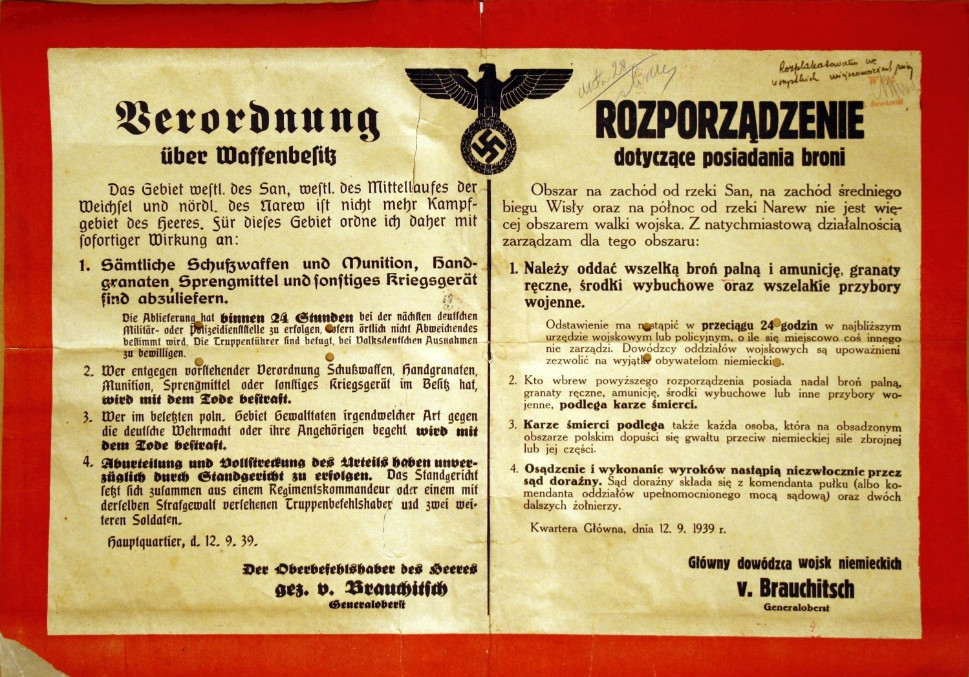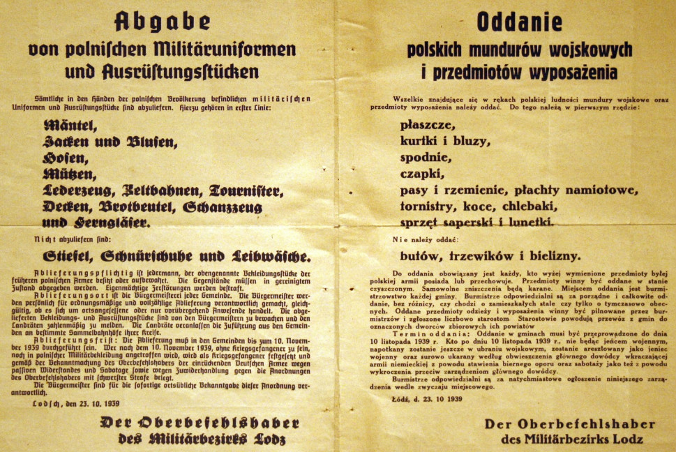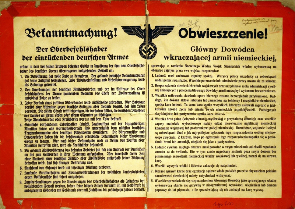 Obwieszczenie Głównego Dowódcy wkraczającej armii niemieckiej, 1939 r.